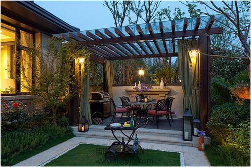 所有庭院都注意圍合的設計,因為私密和安靜要靠圍欄、實墻、攀爬植物等的圍合來實現。在庭院中,使用硬質材料往往是決定庭院設計風格的關鍵。