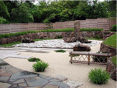 布局從整體感覺上講,日本庭園很整潔,灌木修剪得很整齊,水面上露出幾塊踏腳石,園子里點綴著幾盞石燈籠,地上耙有一層沙子或礫石,偶爾還別出心裁地堆砌一些巖石和石塊。